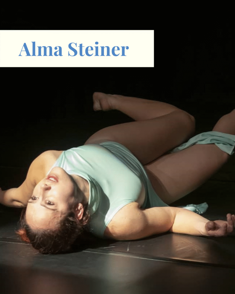 Alma se graduó en el Institut del Teatre de Barcelona en 2018 y está actualmente completando su formación en la Danish National School of Performing Arts en Copenhague. Su enfoque hacia la danza y el movimiento está muy conectado con el teatro y la voz. Alma ha construido su carrera como bailarina en varios países del mundo formando parte de compañías como Erem Dance (Delémont, Suiza), Stragiles de la compañía In2it (Estocolmo, Suecia), Cía Moveo, l’Atapeïda, entre otras. A lo largo de su trayectoria profesional, Alma ha crecido y desarrollado su pasión por el movimiento trabajando y formándose con coreógrafos como Sol Picó, Lali Ayguadé, Toni Mira, Eduard Torroja (Wim Vandekeybus), David Zambrano, Peeping Tom, Fighting Monkeys, DV8, Jorge Crecis, Hofesh Shechter, entre otros. Desde 2014, también codirige Kernel Dance Theatre, un proyecto colectivo que gestiona junto con Junyi Sun y Marina Miguel. Más información en su perfil de Instagram.